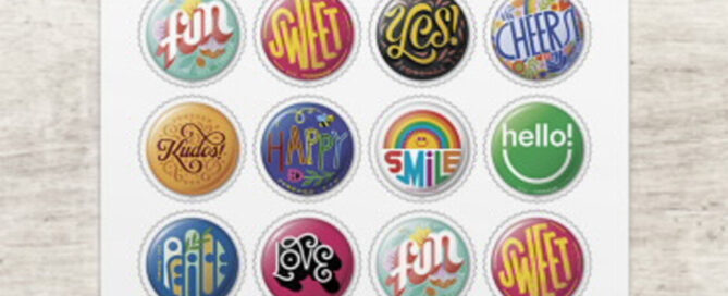 US PINBACK FOREVER STAMPS SEND A WHIMISICAL COLORFUL GREETING ON LETTERS