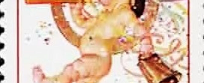 HIS NEW YEAR CHERUB PARTIED HIS WAY ONTO A US STAMP IN 2000!
